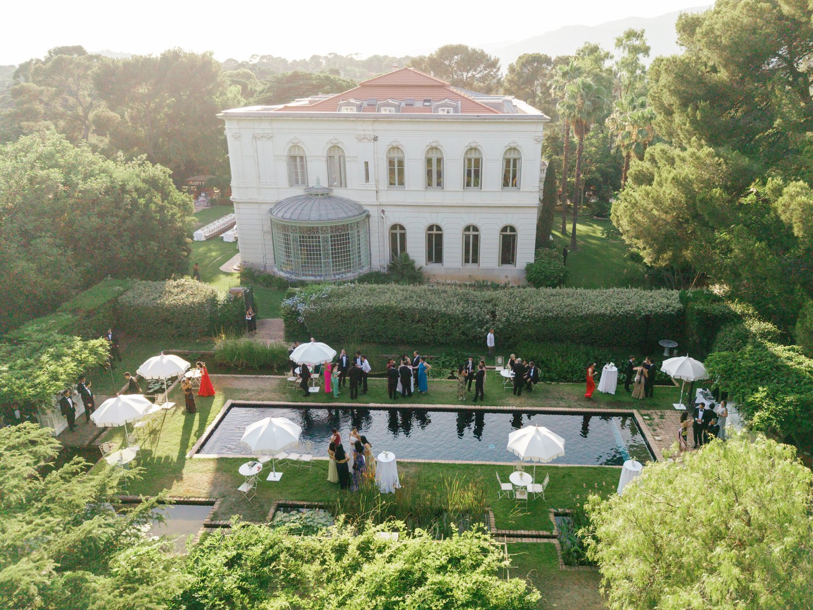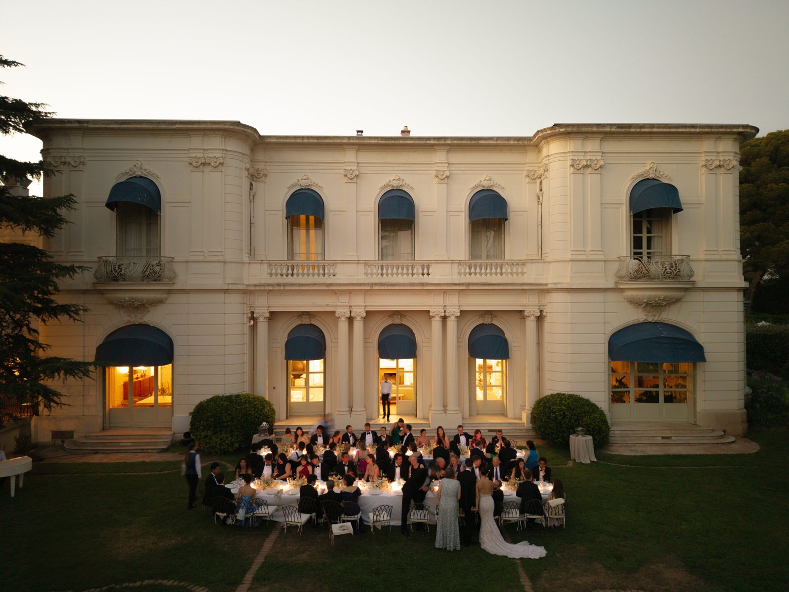 After cocktailing around the pool gardens we invited guests to dine in front of the Domaine for a classic French course dinner ending with pastries courtesy of Cedric Grolet. A group of horns led guests to the renovated stables for a dance party into the early hours of the morning.