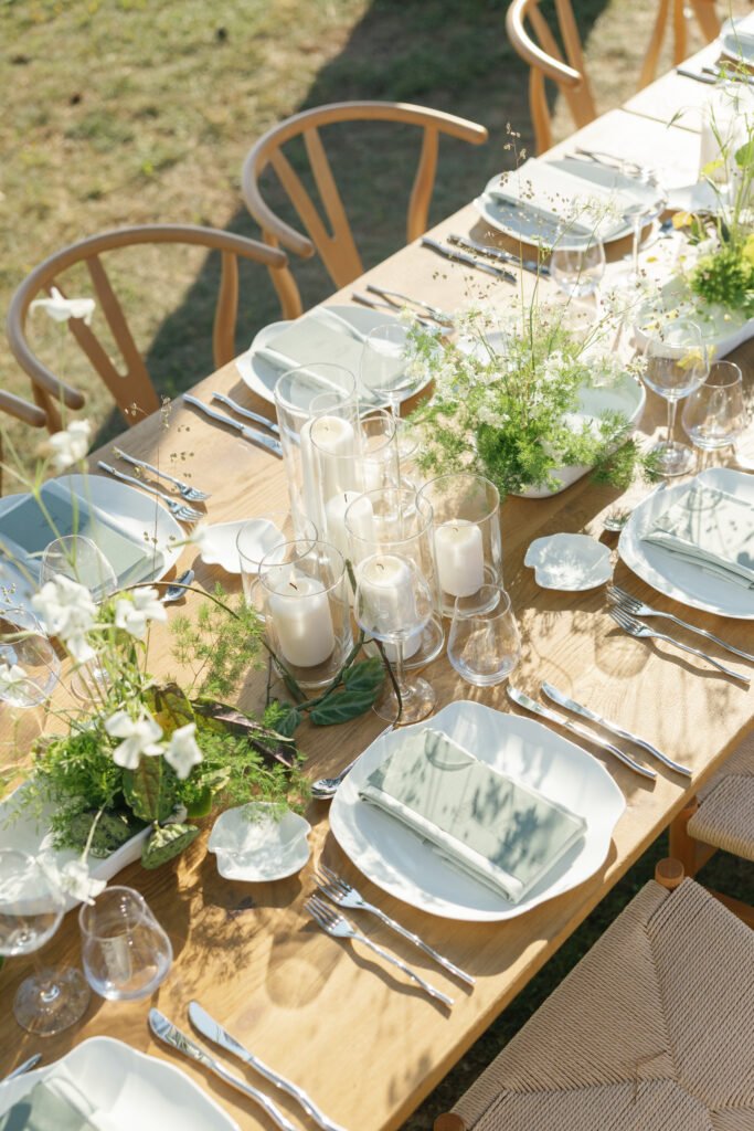 After a day in the sun floating around the French Riviera we invited guests to the infinity pool for a sunset dinner. Creating a space that felt clean, intentional, and romantic.
