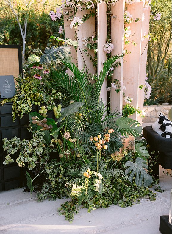 Guests weaved through cacti on a cement pathway as they entered into acre’s los agaves space. Greeted with black salt margaritas and light bites as they made their past a 30ft stone bar adorned with dense local greenery.