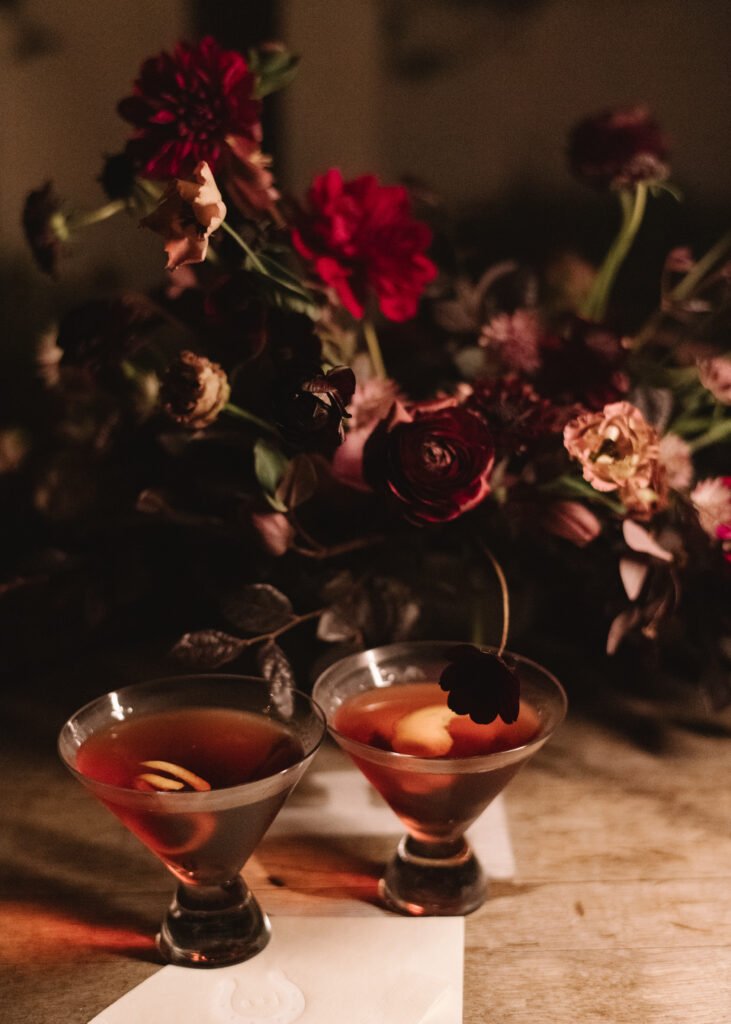 Guests were greeted with negronis and chardonnay from the estate. The evening was filled with abundant seasonal food stations, toasts to the happy couple, and lively music from the jazz trio. Creative direction while at Alison Events.